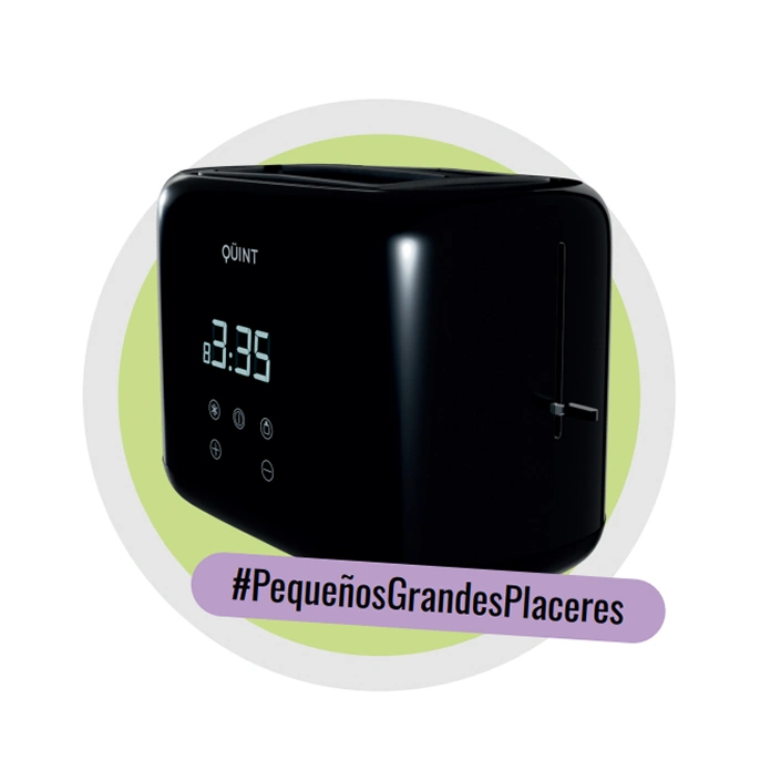 Su acabado en elegante color negro no solo complementa cualquier estilo de cocina, sino que también garantiza durabilidad y facilidad de limpieza. Gracias a su función de descongelado y recalentamiento, la Tostadora Quint se adapta a tus necesidades diarias, ofreciéndote un desayuno rápido y delicioso con cada uso.