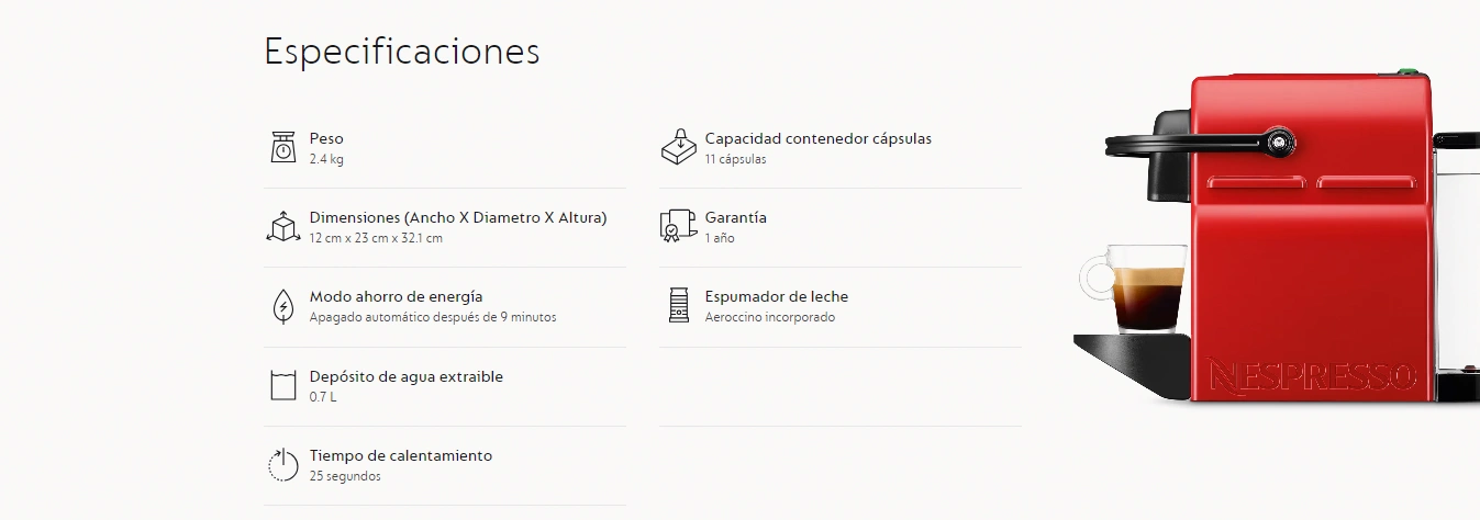 Cafetera Nespresso Inissia Roja + Aeroccino