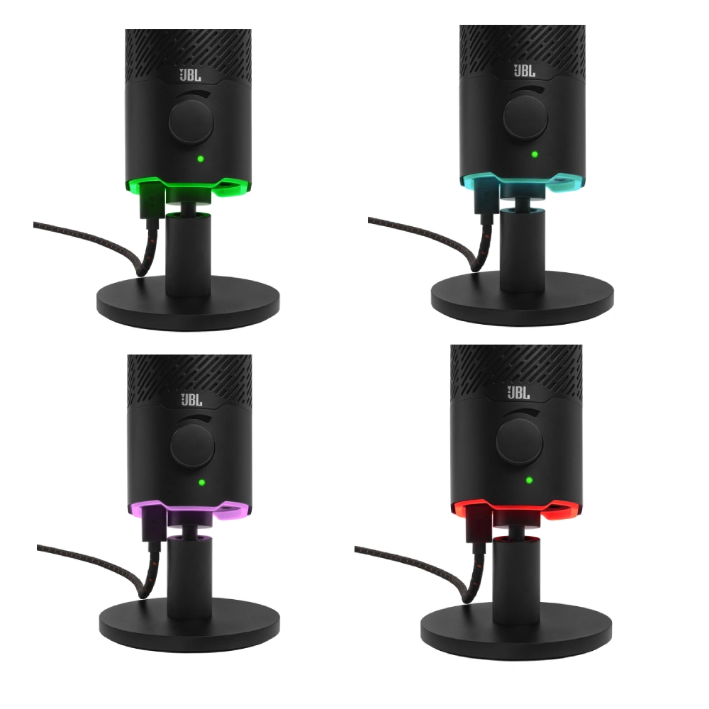 ​El JBL Quantum Stream es un micrófono USB premium diseñado para gaming, streaming y grabación, que ofrece un condensador Electret doble de 14 mm y una alta frecuencia de muestreo de 96 kHz para capturar la voz con claridad y precisión. Cuenta con dos patrones de captación seleccionables: cardioide para una sola voz y omnidireccional para múltiples voces o interpretaciones en vivo. Su montaje universal permite ajustes de 360 grados, facilitando su adaptación a diversas configuraciones. Además, dispone de monitorización de voz con control de volumen sencillo y un indicador luminoso RGB que muestra el estado de silencio, garantizando una experiencia de usuario intuitiva y profesional.