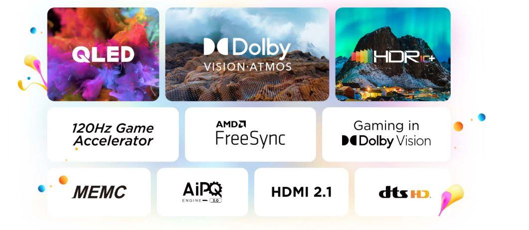 Este televisor ofrece más de mil millones de tonos con una cobertura del 93 % del estándar DCI-P3, brindando colores vibrantes y realistas. Gracias a la tecnología HDR y Dolby Vision, cada escena se muestra con brillo sorprendente, detalles precisos y una profundidad cinematográfica. Incluso en ambientes muy iluminados, mantiene imágenes claras y vívidas. Su procesador AiPQ Engine 3.0 optimiza contenido en 4K, mientras que Game Accelerator y MEMC garantizan fluidez en juegos y escenas de acción. El sonido envolvente DTS Virtual:X™ crea una atmósfera inmersiva, y la certificación TÜV Rheinland protege tu vista durante largas sesiones. Con un diseño ultradelgado, el C645 se integra armoniosamente en cualquier espacio.
